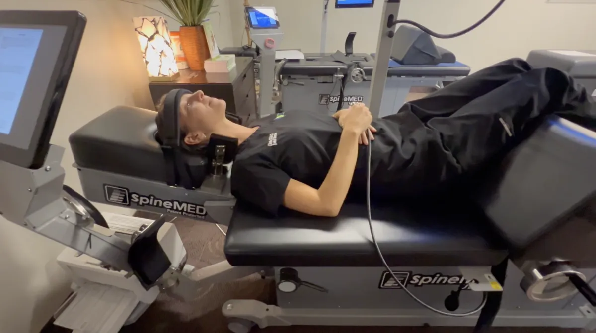 As the spinal decompression table pulls, it gently separates the vertebrae from each other, creating a vacuum inside the discs that we are targeting.